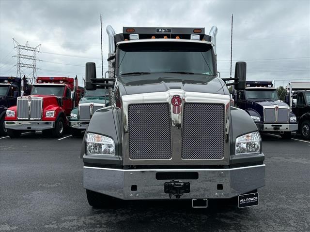 2025 Kenworth T880 with Air-Flo Dump Body - Model Year: 2025 - Model: Kenworth T880 - Engine: PACCAR MX-13 - 510 HP @ 1600 RPM - 1850 lb-ft torque @ 1000 RPM - Engine brake equipped - Transmission: Allison 4500RDS 6-speed automatic with PTO provision - Front Axle: Dana Spicer D2000 20,000 lb capacity - Rear Axle: Dana Spicer D46-172HP 46,000 lb capacity dual axles - Rear axle ratio: 4.30 - Locking rear differential - Pusher Axle: Watson & Chalin SL13 13,500 lb capacity - Wheelbase: 221 inches - Cab to Axle: 147 inches - GVWR: 79,200 lbs - Fuel Tank: 90 US gallon aluminum under cab, left side - DEF Tank: 14 gallon - Exterior Color: Phantom Gray (L6551EY) - Interior: Vantage trim level in Slate Gray Air-Flo Dump Body Specifications: - Model: M-1754-HXRN - Body Length: 17 feet - Side Height: 54 inches - Tailgate Height: 60 inches - Material: Hardox steel - Tailgate: Standard with high-lift kit - Coal Door: Complete assembly for tri-axle - Salt Spreader: Bolt-on spreader apron, 8 x 30 degree - Side Boards: 14'-17' painted - Ladders: Outer (54) and inner, weld-on for tri-axle - Shovel Holder: Weld-on, fabricated - Lights: Corner post strobe light kit and cab strobe light kit for tri-axle - Mud Flaps: Center mud flap adder - Reservoir: Side reservoir kit, aluminum - Additional Features: Salt locks (pair), 24 x 70 WMS assembly Additional Truck Features: - Power windows and door locks - Tilt/telescoping steering column - 18 steering wheel with SmartWheel controls - Kenworth TruckTech remote diagnostics (3-year subscription) - 15 digital display main instrument package - Kenworth radio DEA710 AM/FM/WB/USB/Bluetooth - Dual rectangular 23 air horns - LED marker, stop, turn, and tail lights - Dual Kenworth Aero heated power mirrors with 7 x 13 main and 6 x 7 convex - Exterior stainless steel sun visor - CB radio installation kit - Air-conditioning with auto temperature control Discover the benefits o