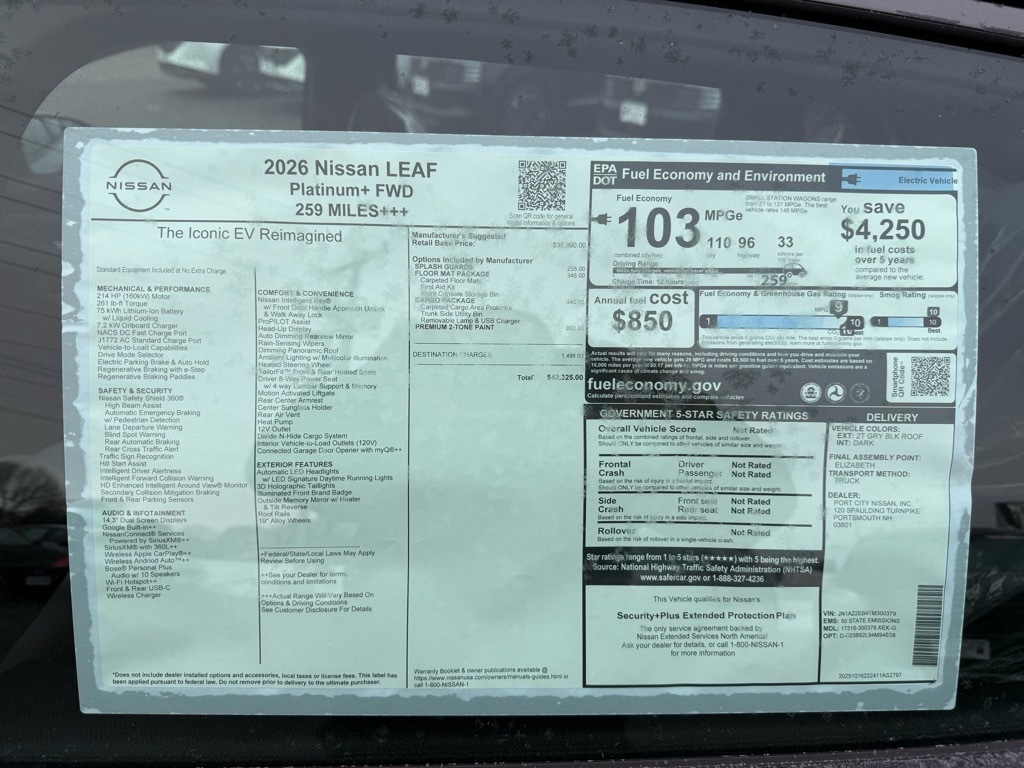 Engine Electric Motor Miles Per Charge: 259