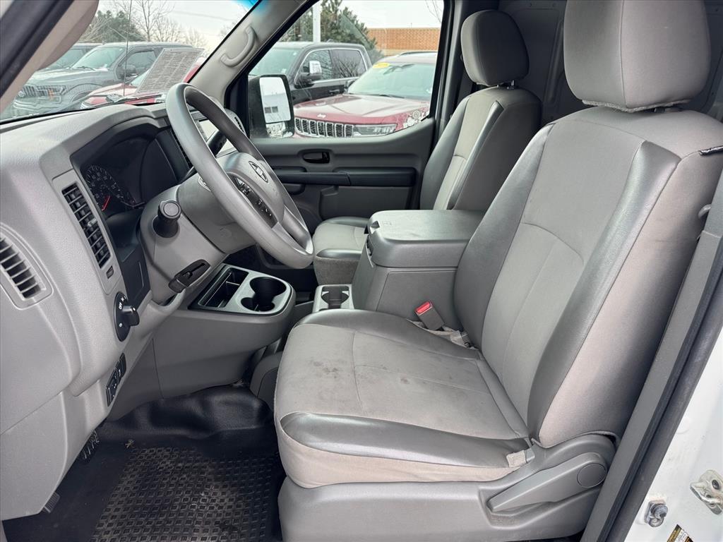Inside the cab is a roomy comfortable interior with wide, supportive seating and an expansive instrument panel. The passenger seat includes a segment-exclusive fold-down feature, providing a convenient worktable. An available lockable center console offers innovative storage compartments and space to hold binders, hanging file folders and a laptop computer. Other convenient storage spaces include a wide overhead console (available with High Roof models), underseat storage drawers (NV2500 HD and NV3500 HD models) and large door pockets.