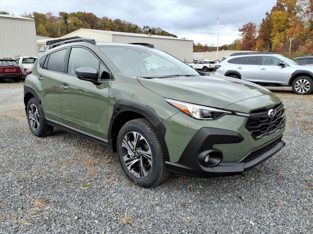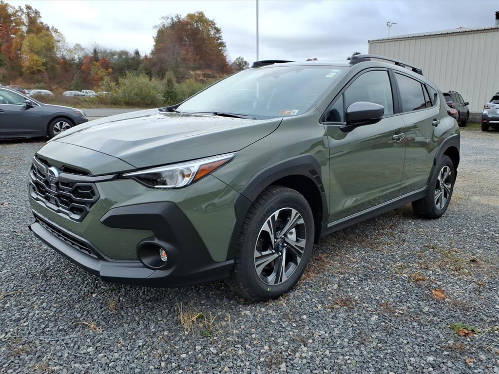 Alpine Green 2026 Subaru Crosstrek Premium AWD Lineartronic CVT 2.5L 4-Cylinder DOHC 16V This Vehicle Includes the Following Features:. Convenience Package #2 (Auto-Dimming Mirror with Compass and HomeLink, Rear Bumper Cover, and Splash Guards), 4-Wheel Disc Brakes, 6 Speakers, ABS brakes, Air Conditioning, Alloy wheels, AM/FM radio: SiriusXM, Anti-whiplash front head restraints, Auto High-beam Headlights, Automatic temperature control, Brake assist, Bumpers: body-color, Cloth Upholstery, Driver door bin, Driver vanity mirror, Dual front impact airbags, Dual front side impact airbags, Electronic Stability Control, Emergency communication system: MySubaru Companion (5-years free), Exterior Parking Camera Rear, Four wheel independent suspension, Front anti-roll bar, Front Bucket Seats, Front Center Armrest, Front dual zone A/C, Front fog lights, Front reading lights, Fully automatic headlights, Illuminated entry, Knee airbag, Low tire pressure warning, Occupant sensing airbag, Outside temperature display, Overhead airbag, Overhead console, Panic alarm, Passenger door bin, Passenger vanity mirror, Power door mirrors, Power steering, Power windows, Radio data system, Radio: Subaru 11.6Multimedia Plus System, Rear anti-roll bar, Rear seat center armrest, Rear side impact airbag, Rear window defroster, Rear window wiper, Remote keyless entry, Security system, Speed control, Speed-sensing steering, Split folding rear seat, Spoiler, Steering wheel mounted audio controls, Tachometer, Telescoping steering wheel, Tilt steering wheel, Traction control, Trip computer, Turn signal indicator mirrors, Variably intermittent wipers, and Wheels: 17x 7.0J Machine Finish Aluminum-Alloy. 26/33 City/Highway MPG