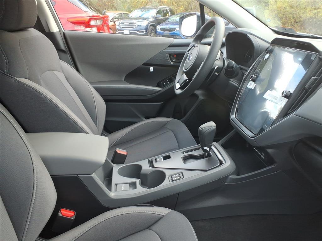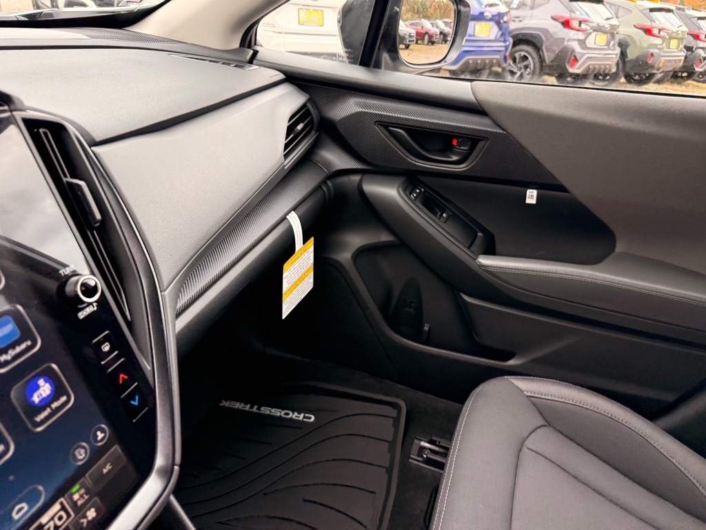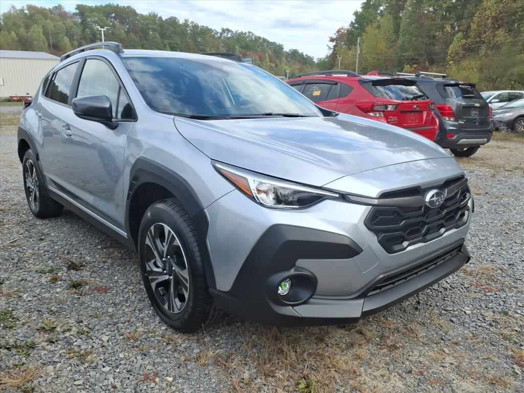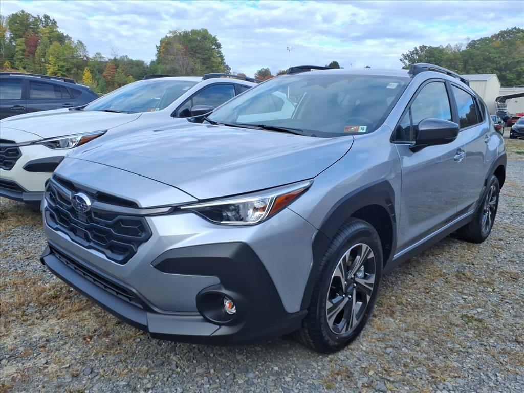 Silver 2026 Subaru Crosstrek Premium AWD Lineartronic CVT 2.5L 4-Cylinder DOHC 16V This Vehicle Includes the Following Features:. 4-Wheel Disc Brakes, 6 Speakers, ABS brakes, Air Conditioning, All-Weather Floor Liners, Alloy wheels, AM/FM radio: SiriusXM, Anti-whiplash front head restraints, Auto High-beam Headlights, Auto-Dimming Mirror with Compass and HomeLink, Automatic temperature control, Brake assist, Bumpers: body-color, Cloth Upholstery, Driver door bin, Driver vanity mirror, Dual front impact airbags, Dual front side impact airbags, Electronic Stability Control, Emergency communication system: MySubaru Companion (5-years free), Exterior Parking Camera Rear, Four wheel independent suspension, Front anti-roll bar, Front Bucket Seats, Front Center Armrest, Front dual zone A/C, Front fog lights, Front reading lights, Fully automatic headlights, Illuminated entry, Knee airbag, LED Upgrade, Low tire pressure warning, Occupant sensing airbag, Outside temperature display, Overhead airbag, Overhead console, Panic alarm, Passenger door bin, Passenger vanity mirror, Power door mirrors, Power steering, Power windows, Radio data system, Radio: Subaru 11.6Multimedia Plus System, Rear anti-roll bar, Rear Bumper Cover, Rear seat center armrest, Rear side impact airbag, Rear window defroster, Rear window wiper, Remote keyless entry, Security system, Speed control, Speed-sensing steering, Split folding rear seat, Spoiler, Steering wheel mounted audio controls, Tachometer, Telescoping steering wheel, Tilt steering wheel, Traction control, Trip computer, Turn signal indicator mirrors, Variably intermittent wipers, and Wheels: 17x 7.0J Machine Finish Aluminum-Alloy. 26/33 City/Highway MPG